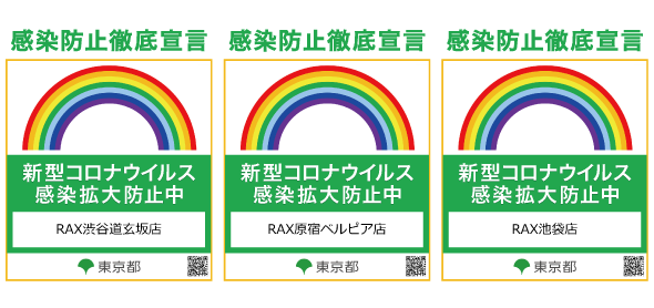この度RAXでは新型コロナウイルス感染症のさらなる感染症防止対策のため、東京都が実施している「感染防止徹底宣言ステッカー」を取得いたしました。